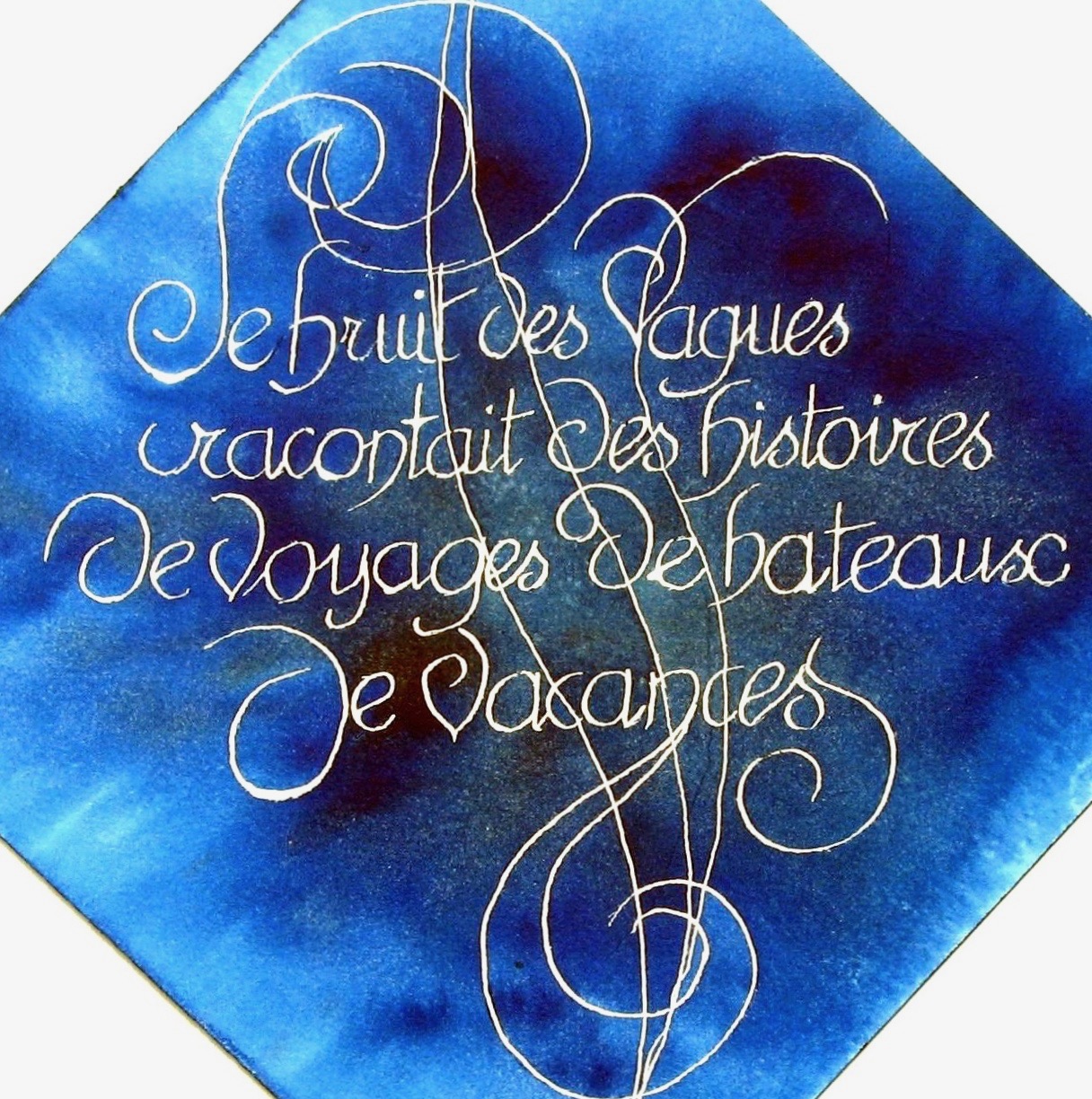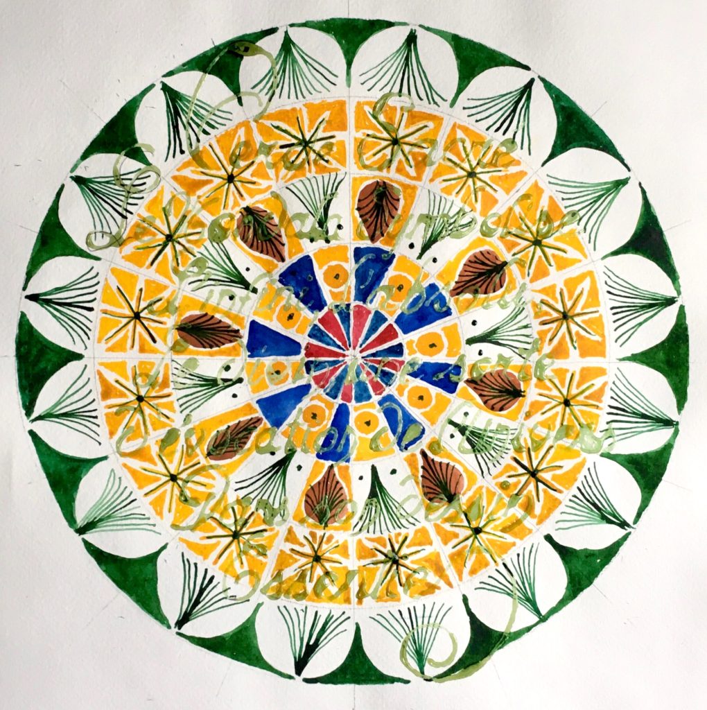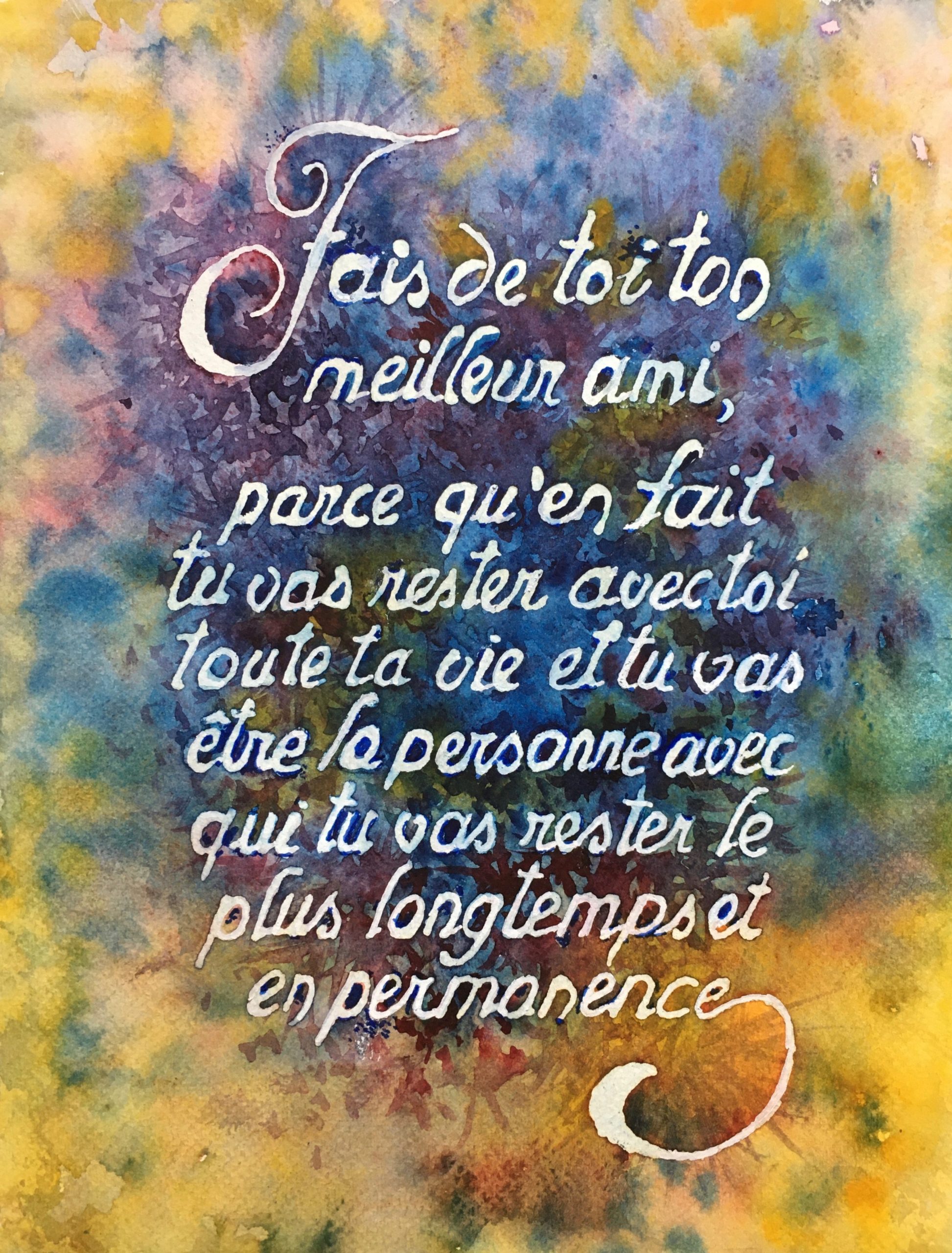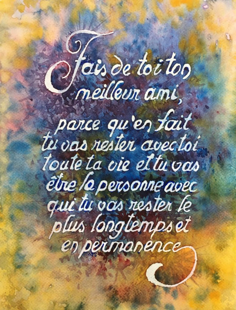 Voici quelques belles paroles écrites à la gomme liquide, avant de poser des fonds d’aquarelle (adressées pour certaines chaque jour pendant la période du confinement en mars 2020, à des membres de la famille et amis).
